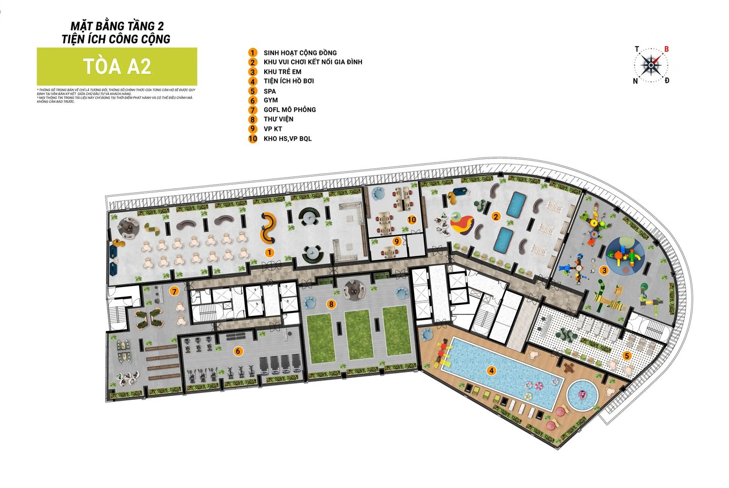 Tầng 1–2: Shophouse và tiện ích nội khu (hồ bơi, gym & spa, kids club…).
