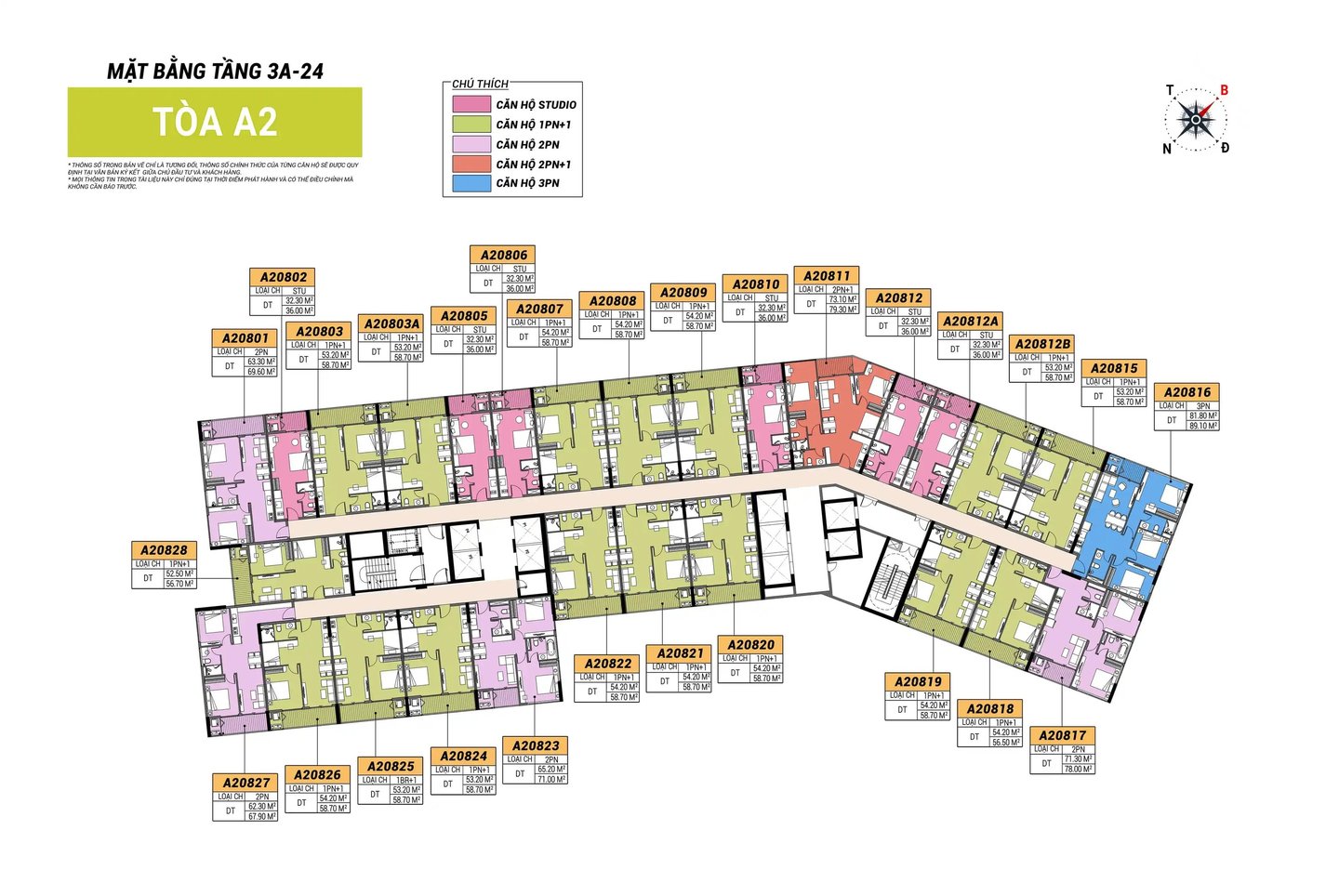 Loại hình căn hộ: Studio, 1BR+, 2BR, 3BR, Penthouse